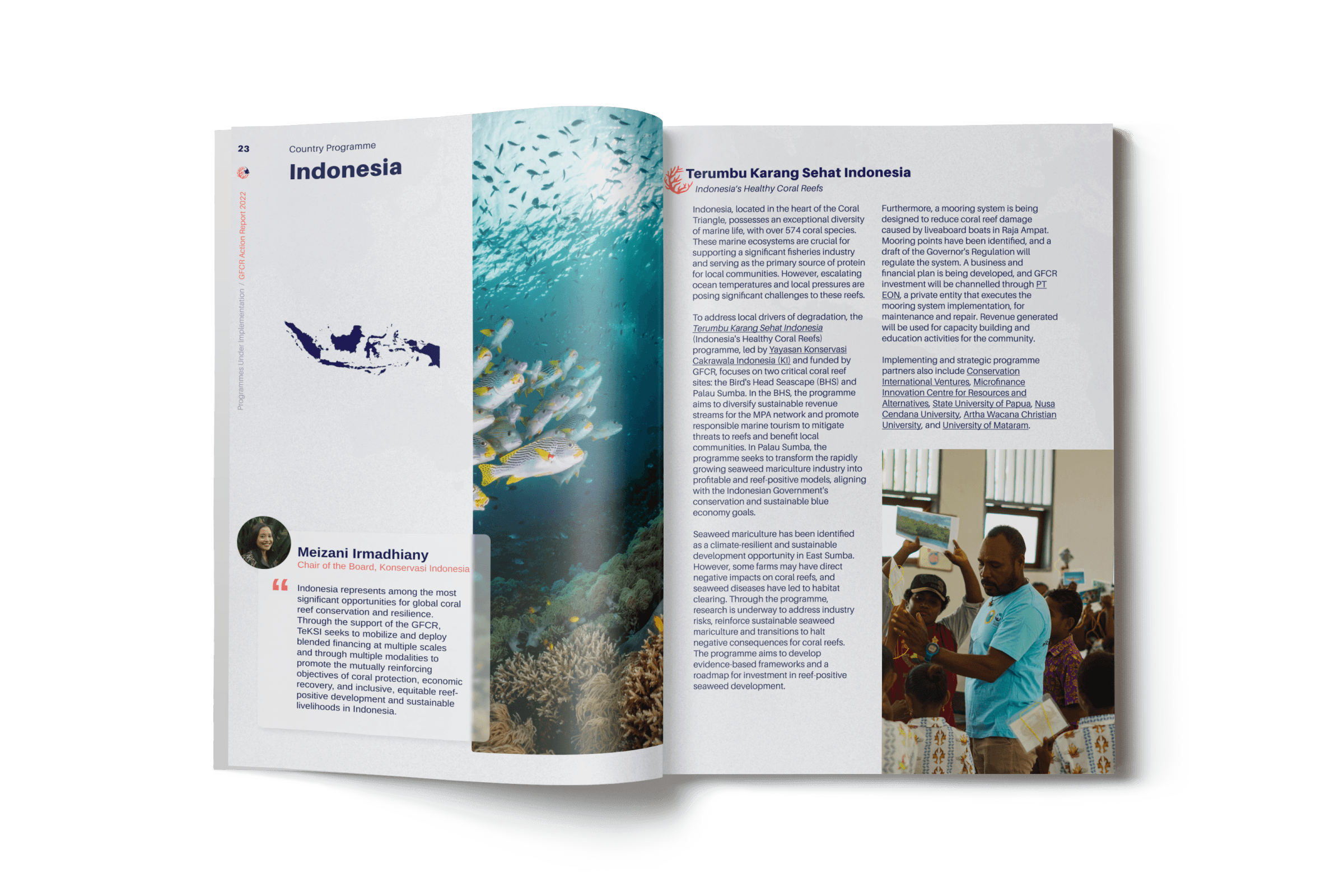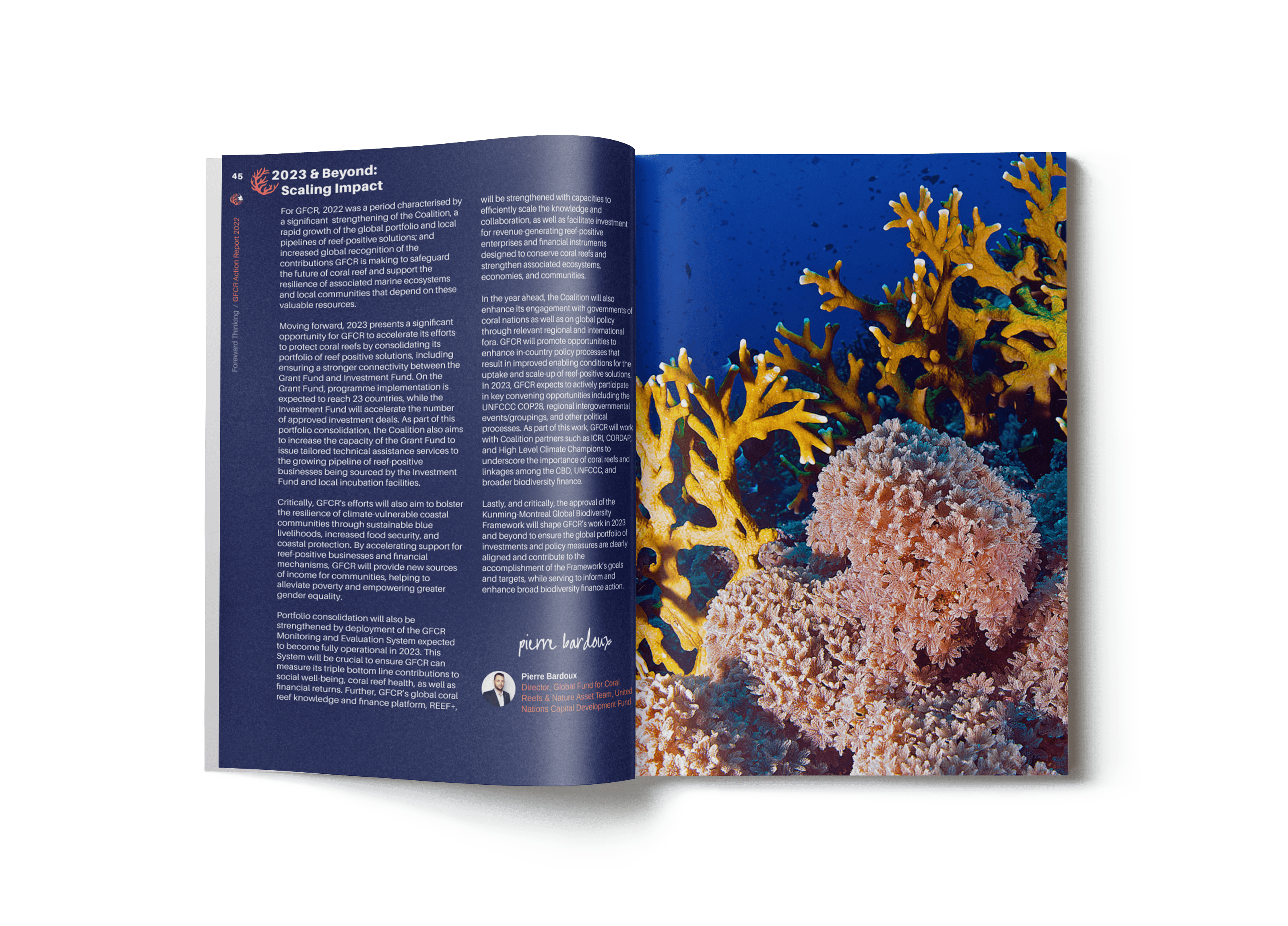 The Global Fund for Coral Reefs (GFCR), a UN-affiliated organization, needed a professionally designed 2022 Annual Report to showcase its progress in marine conservation, funding outcomes, and global partnerships.